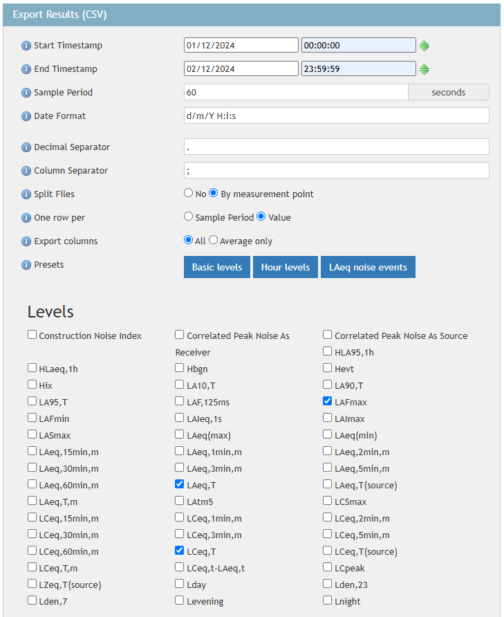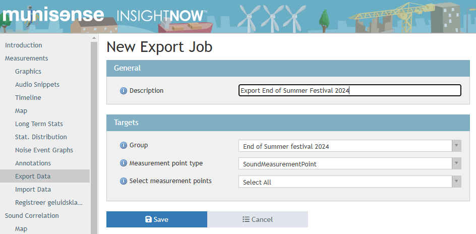 - Now select the group and the measurement point type (in this example Sound Measurement Point)