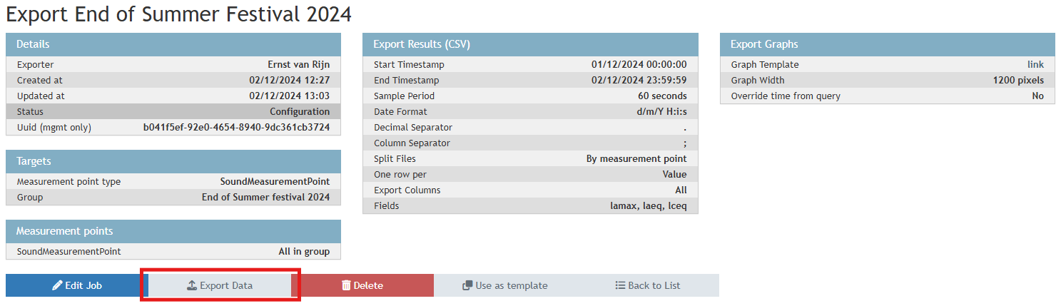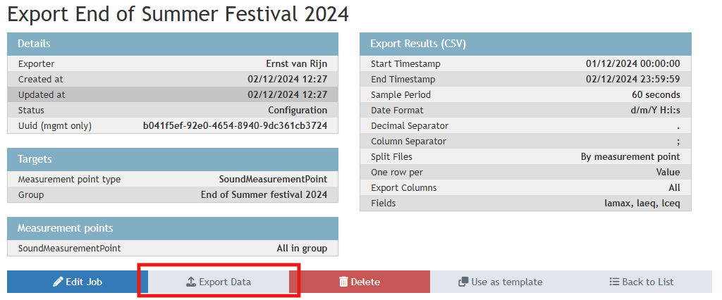 - On the following screen click Export Data to start the export job.