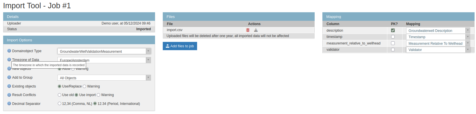 It is also possible to import measurement values relative to NAP (Normaal Amsterdams Peil – Dutch reference level). However, it is important to note that these values will be internally converted to a value relative to the wellhead.
