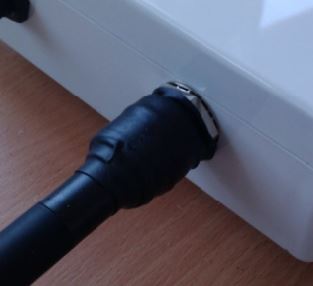 When the antenne is screwed onto the device, one should use volcanic tape around the connector to protect it from water penetration into the antenna. Water will cause a short circuit of the antenne and dramatically reduce the working. When it is properly taped it should look like below