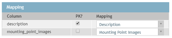- If needed correct these warnings with the Mappings option, use the PK checkbox to indicate that that field is used to identify an object