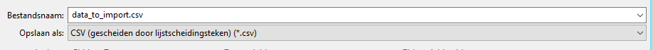Zorg ervoor dat je geëxporteerde data al in de ondersteunde formaat zit (csv). In Excel kan dit gedaan worden door te gaan naar Bestand -> Opslaan