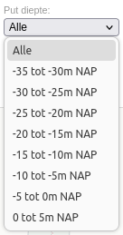 De Put diepte selectie is een filter voor de kaart waarbij alleen meetpunten getoond worden waarvan het waterniveau zich binnen de gekozen diepten bevindt.