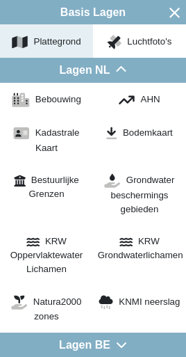 Onder Lagen NL/BE zijn meerdere kaartlagen beschikbaar voor het toevoegen van extra informatie aan de kaart.