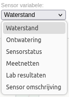 De sensor variabele selectie veranderd de getoonde informatie in de meetpunten op de kaart.